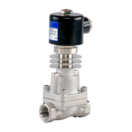 Солєноїдні клапани для пари серії SV-SH з діаметром DN10~DN50 поставляються у виконанні з різьбовим і фланцевим підключенням. Вони виготовлені з нерж.сталі та високотемпературного PTFE (+250°C макс) для роботи з насиченою парою, гарячим конденсатом. Мають убудований у верхню кришку радіатор для відведення тепла. Працюють у режимі “відкрито-закрито” із замикання електричного ланцюга, а за відсутності живлення – нормально закриті.