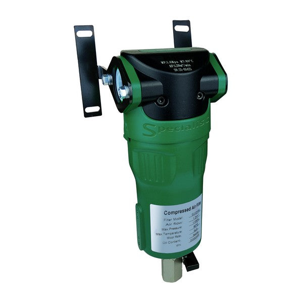 SCC-FJ10-15(H) — це промисловий вугільний фільтр для компресора повітря, призначений для адсорбції залишків води та масла, летких органічних сполук, парів аерозолів для великого об'єму до 1,2 куб.м/хв стиснутого повітря під високим тиском до 16 атм. Підключається пристрій до повітропроводу через два отвори з внутрішньою різьбою G 1/2″. Рекомендується використовувати передфільтрацію у вигляді групи фільтрів SCC-WS-FJ10-15-G-C-T-A або наявні у вас аналоги зі ступенем фільтрації 0,01 мкм. Фільтри більш грубого очищення запобігають занадто швидкому забрудненню змінного вугільного картриджа, а також допомагають звести до мінімуму втрати тиску.