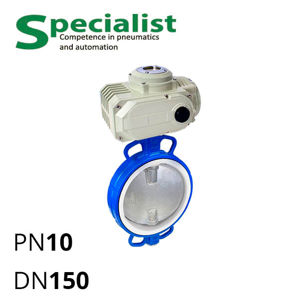 SCBF-D674-10XEC/XES/XFS-150-HL-20/100 це нержавна засувка батерфляй ДУ 150 з електроприводом. Диск запірної арматури виготовлений з харчової нержавіючої сталі марки ANSI CF8 або СF8M, що є аналогами AISI 304 або 316. Корпус сталевий з WCB. Сам дисковий поворотний затвор ДУ150 є розбірним та ремонтопридатним та призначений виконавчий механізм для міжфланцевої установки на трубопроводах з діаметром умовного проходу DN 150 мм, де здійснюватиме відкриття і закриття проходу для робочого середовища.
