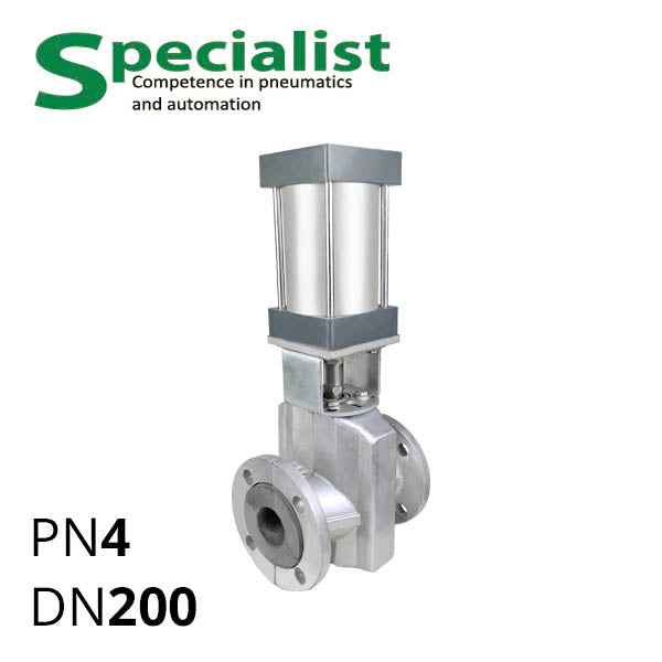 SCBF-PZ674-6J-200-P — це клапан шланговий перетискний пневматичний з фланцевим підключенням ДУ200, призначений для управління абразивними, хімічно агресивними, волокнистими, в'язкими середовищами та суспензіями під високим тиском до 4 бар (для діаметрів засувки 150 і менших —до 6 бар). Перетискний клапан є гарною альтернативою чавунним засувкам для стічних вод.