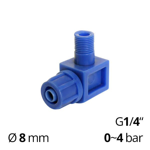 У компанії "Спеціаліст" ви можете придбати пластикові кутові штуцери для трубок з діаметром Ø6 або 8 мм з зовнішньою різьбою G1/8 або 1/4"