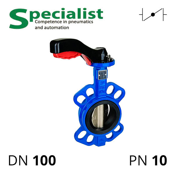 Дисковый поворотный затвор ДУ 100 чугунный межфланцевый неразборной с рукояткой серии SCBF-D673