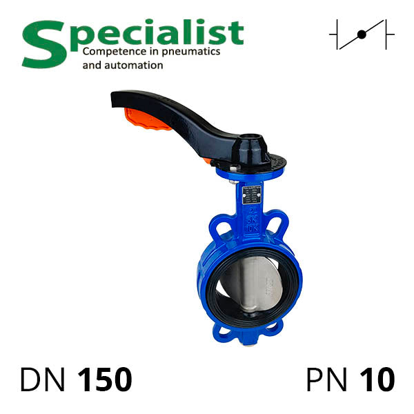 Дисковый поворотный затвор ДУ 150 чугунный межфланцевый неразборной с рукояткой серии SCBF-D673