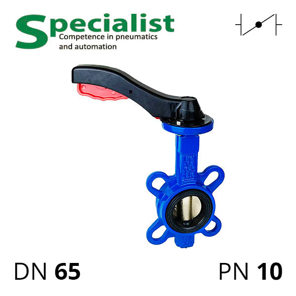 Дисковый поворотный затвор ДУ 65 чугунный межфланцевый неразборной с рукояткой серии SCBF-D673