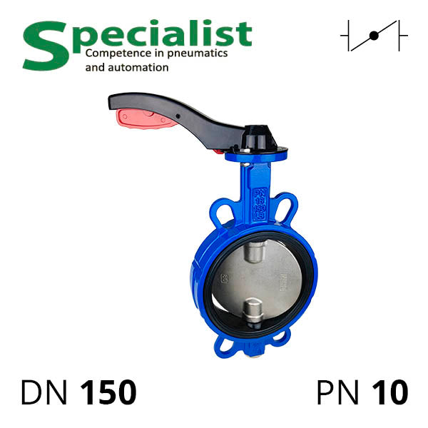 Этот нержавеющий ручной дисковый затвор устанавливается на трубу проходным диаметром 150 миллиметров между предварительно приваренными воротниковыми фланцами ISO 7005-1(EN 1092-2) . На корпусе расположены приливы с отверстиями ("ушки") для центрирования поворотной защелки между фланцами.