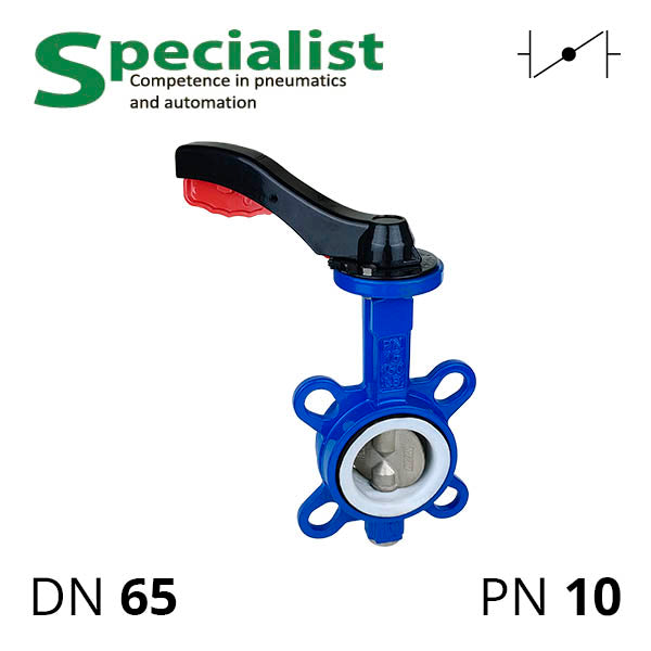 Этот нержавеющий ручной дисковый затвор устанавливается на трубу проходным диаметром 65 миллиметров между предварительно приваренными воротниковыми фланцами ISO 7005-1(EN 1092-2). На корпусе расположены приливы с отверстиями ("ушки") для центрирования поворотной задвижки между фланцами.