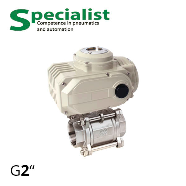Трехскладовой кран шаровой ДУ 50 с резьбой в-в 2″ и электроприводом SCBV-Q611F-16FC-50- HL-20 по умолчанию изготовлен из нержавеющей стали и используется для автоматизированного открытия и закрытия водопровода, линии разлива питьевых напитков в бутылки, продуктов нефтепереработки и химических веществ. Обязательно нужно проверять совместимость состава жидкости или газа с материалами крана: PTFE-тефлоном и AISI 304. При необходимости звоните и заказывайте у Specialist такой же сборник шарового крана с эл.приводом, но из других материалов.